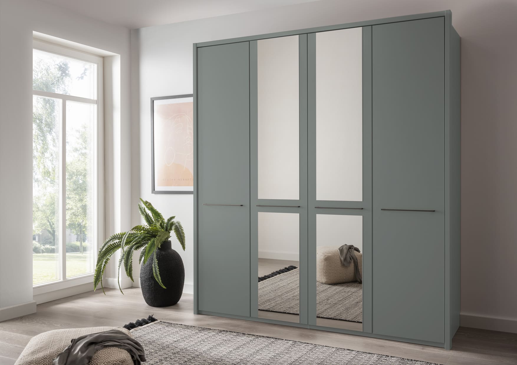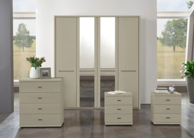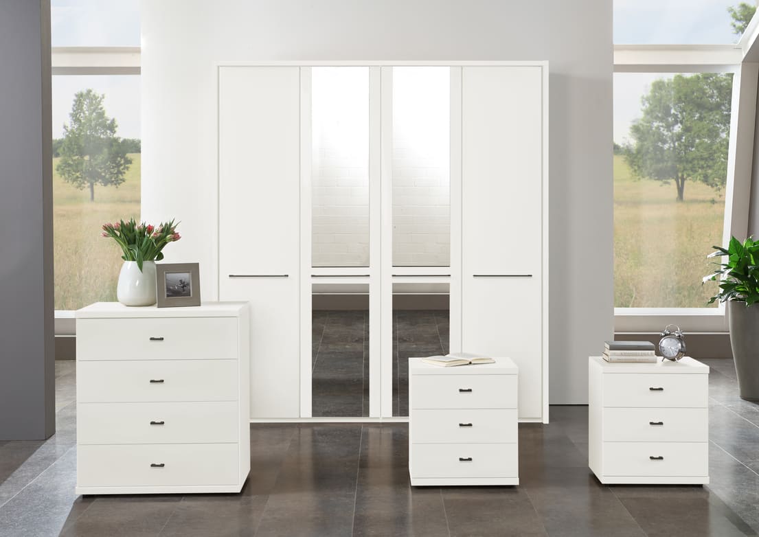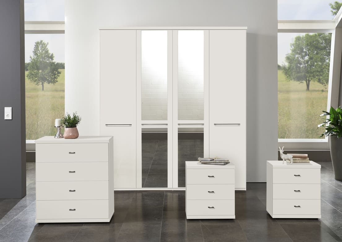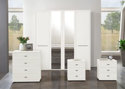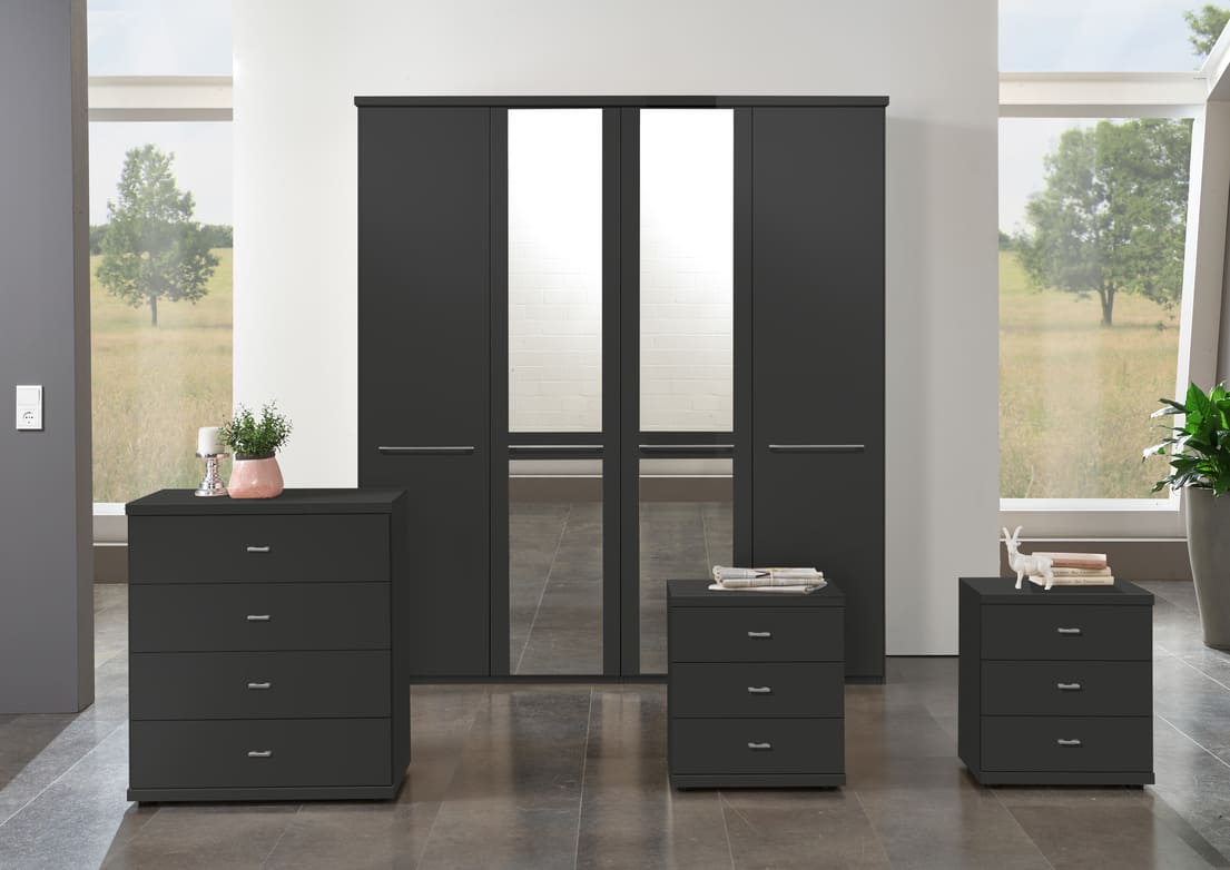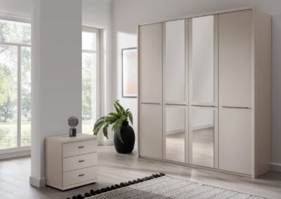 Cairns is a value-focused wardrobe with matt-painted hinged doors, available in white, pebble grey, sage green and graphite for a contemporary look to suit any style of home. It is available with or without mirrors, with handles in slate or silver, and is a versatile choice for those on a budget.