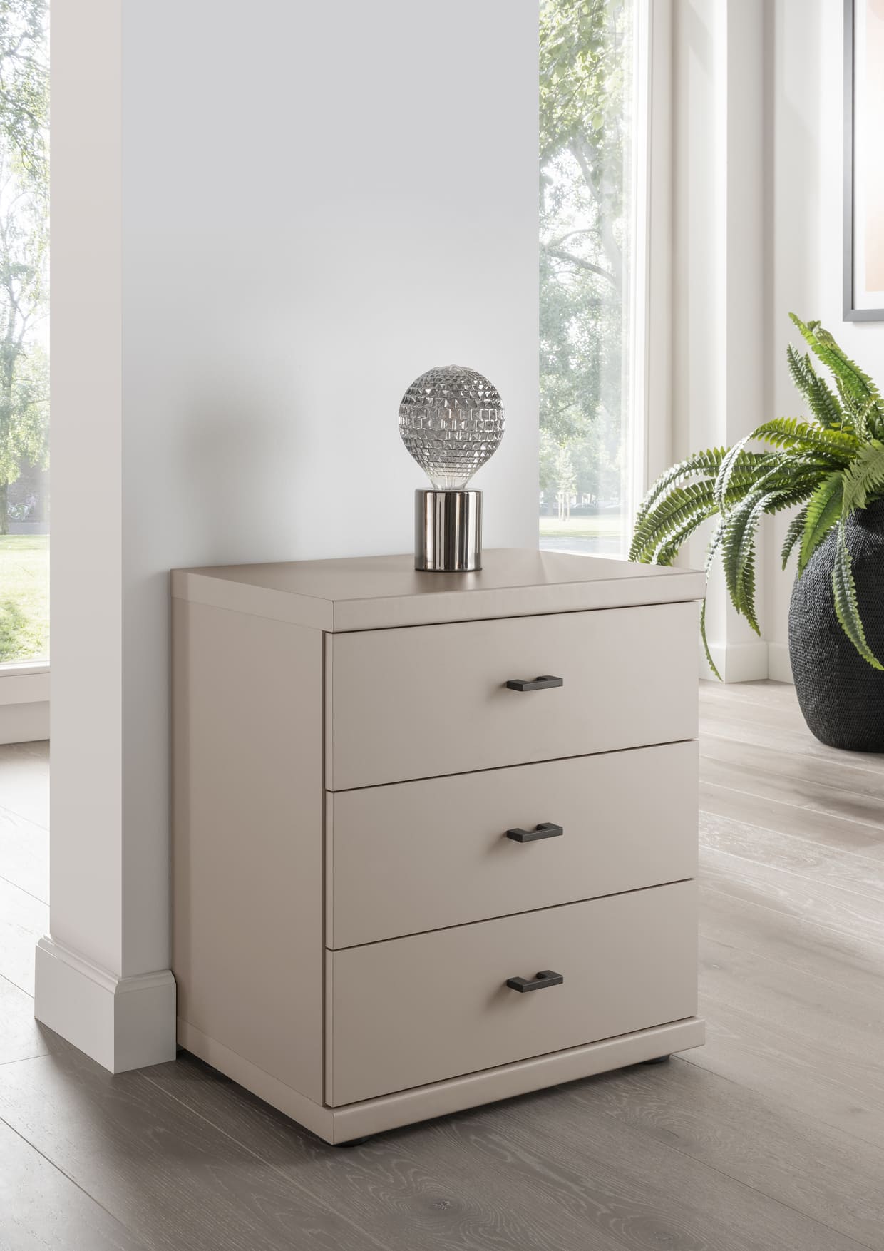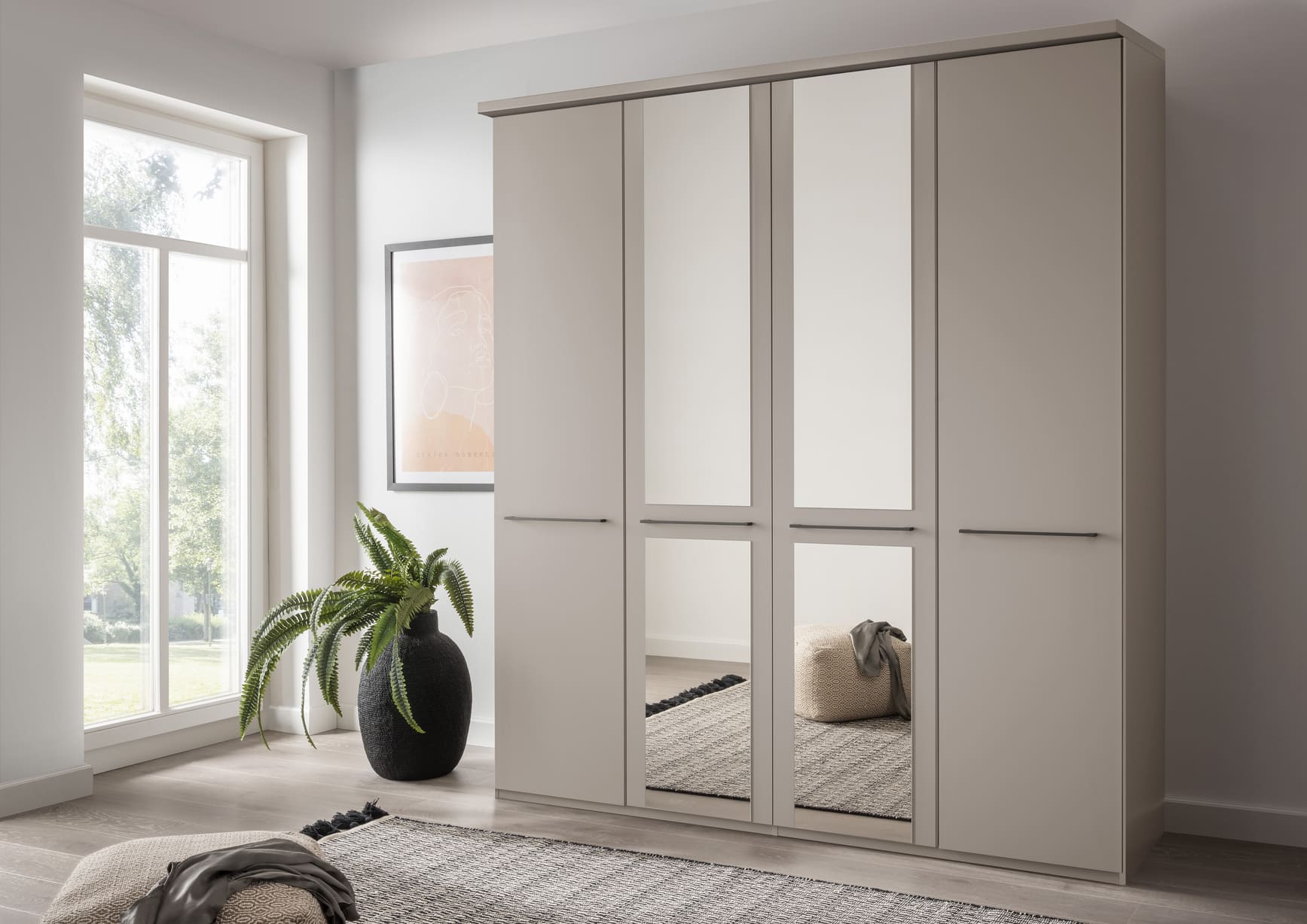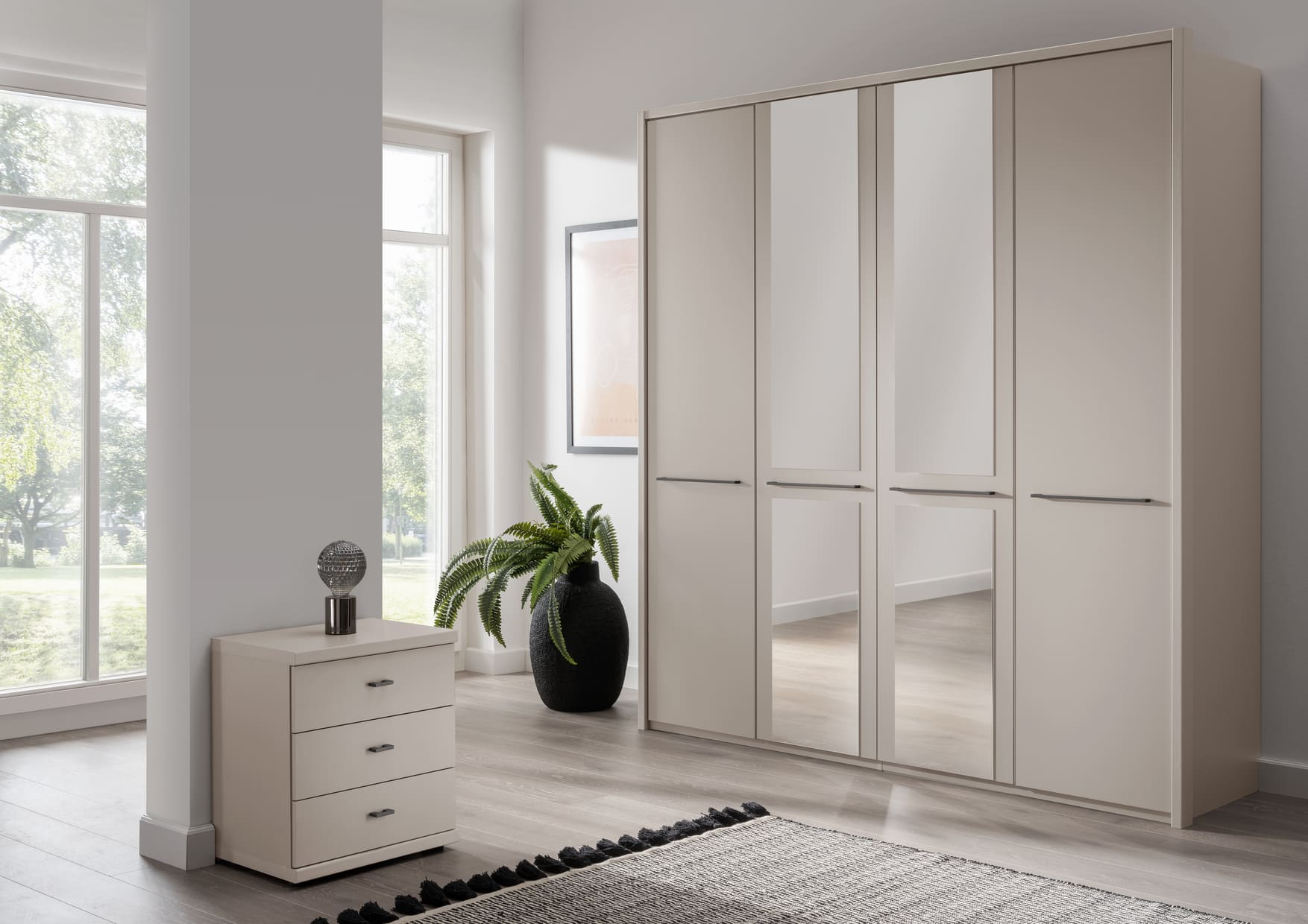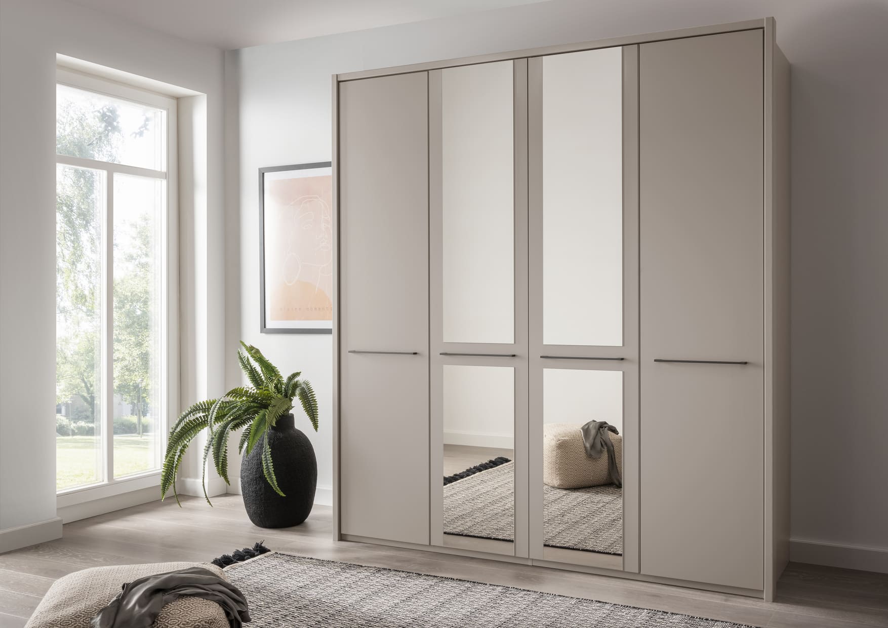 Cairns is a value-focused wardrobe with matt-painted hinged doors, available in white, pebble grey, sage green and graphite for a contemporary look to suit any style of home. It is available with or without mirrors, with handles in slate or silver, and is a versatile choice for those on a budget.