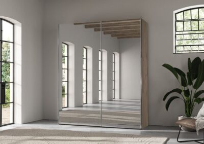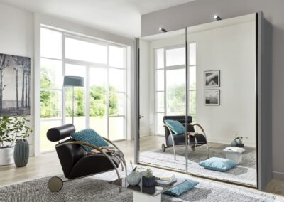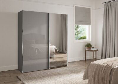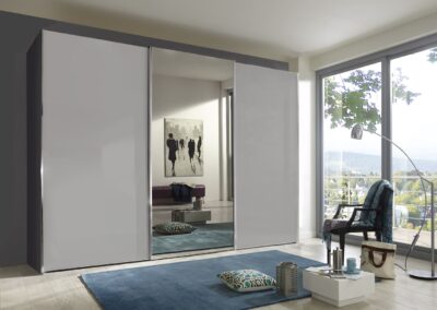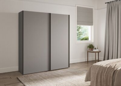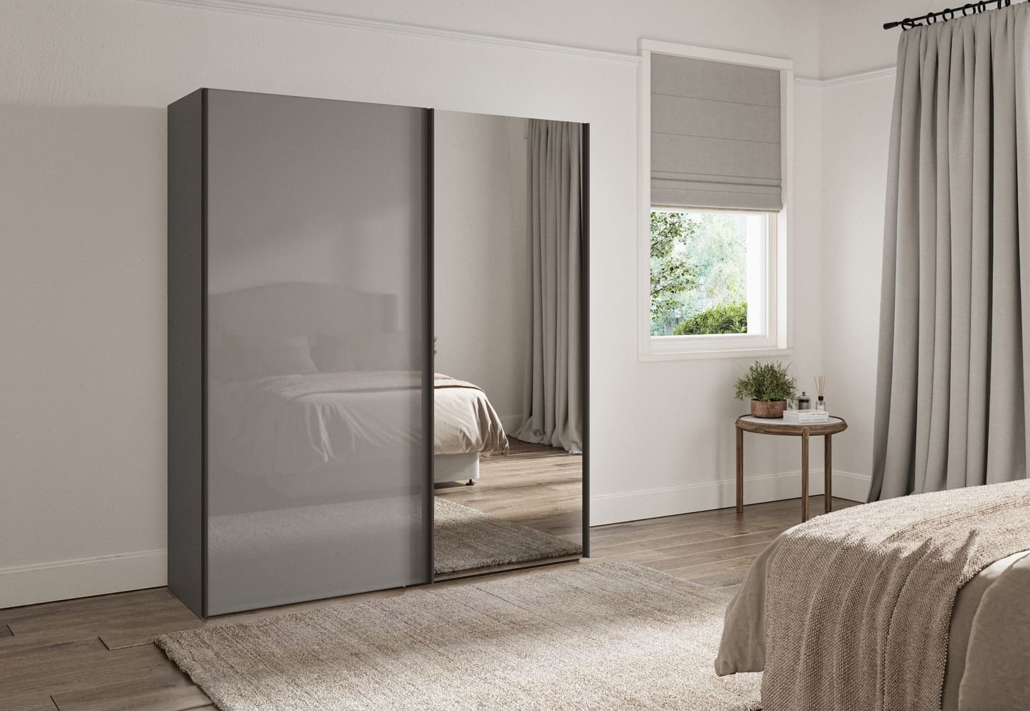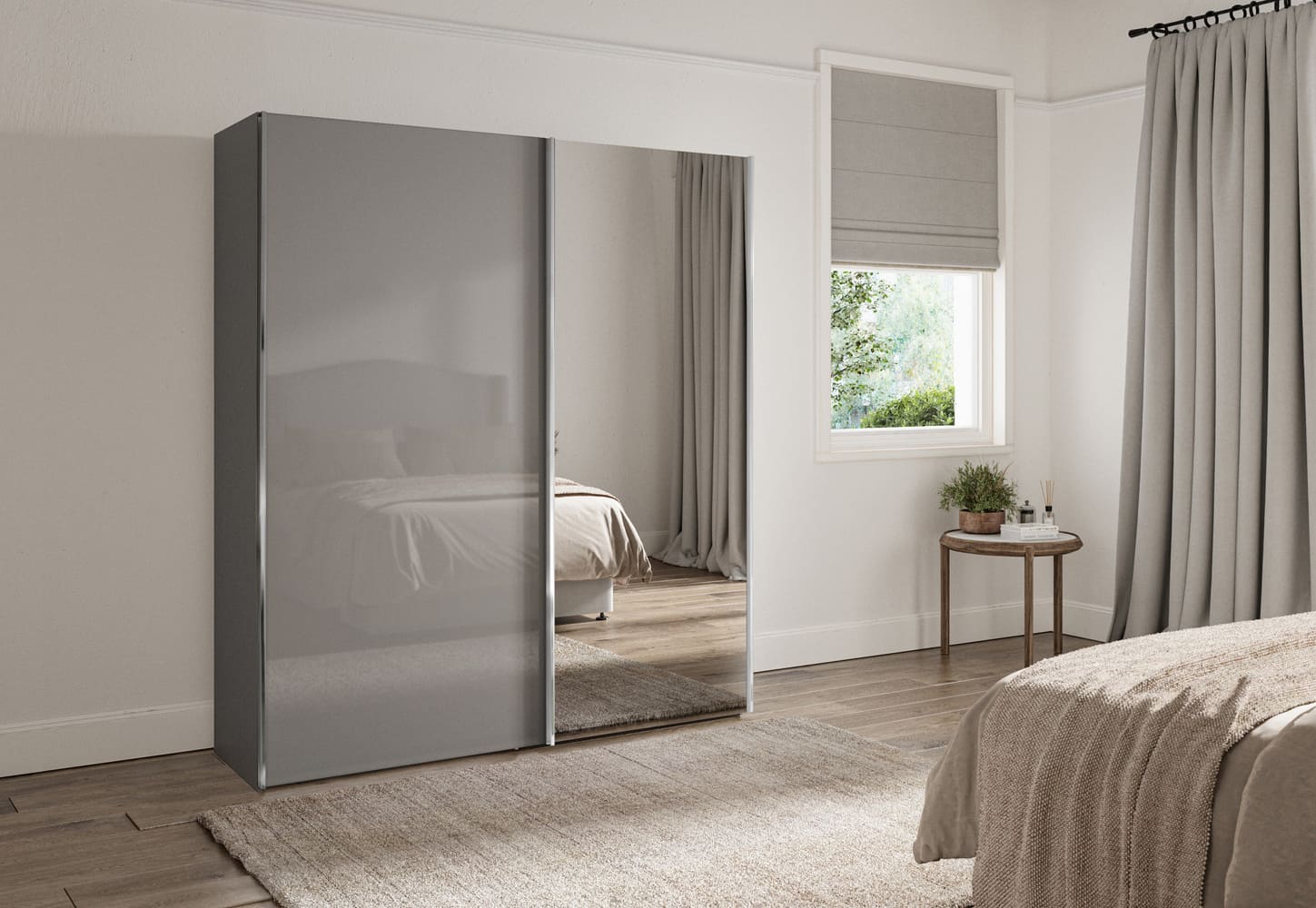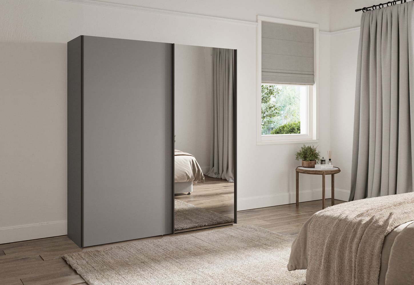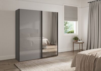 There are plenty of colours and styles to choose from with Miami Plus. A sliding door range, you’ve got sultry graphite or smooth pebble grey, soft champagne, classic white or characterful wood finishes Nordic oak, rustic oak, dark rustic oak and grainy looking holm oak. Add in mirrored glass fronts and a choice of chrome or slate trims and handles and there’s surely something to suit every taste.