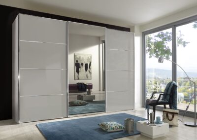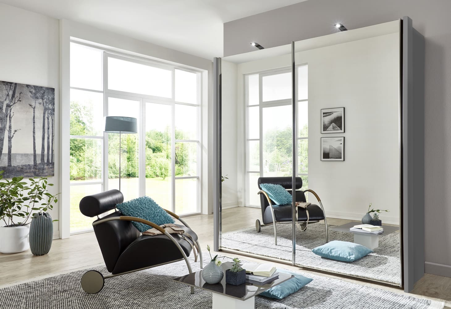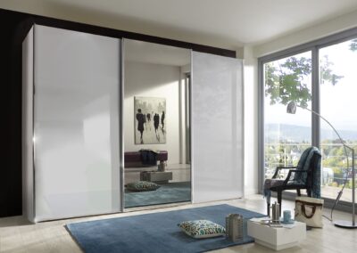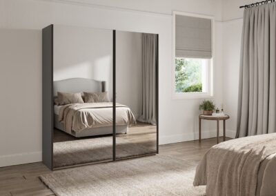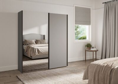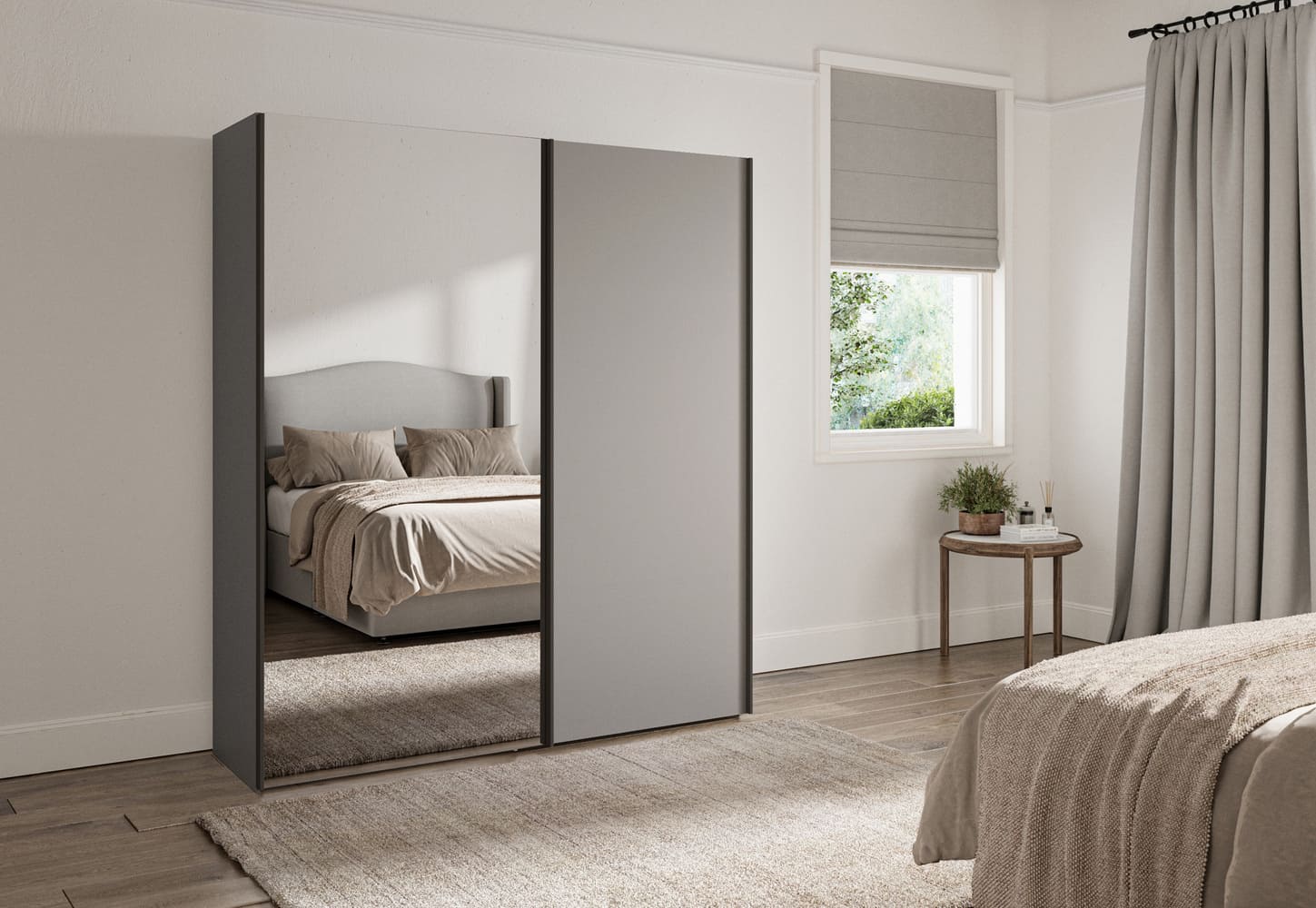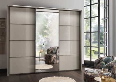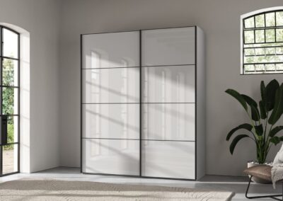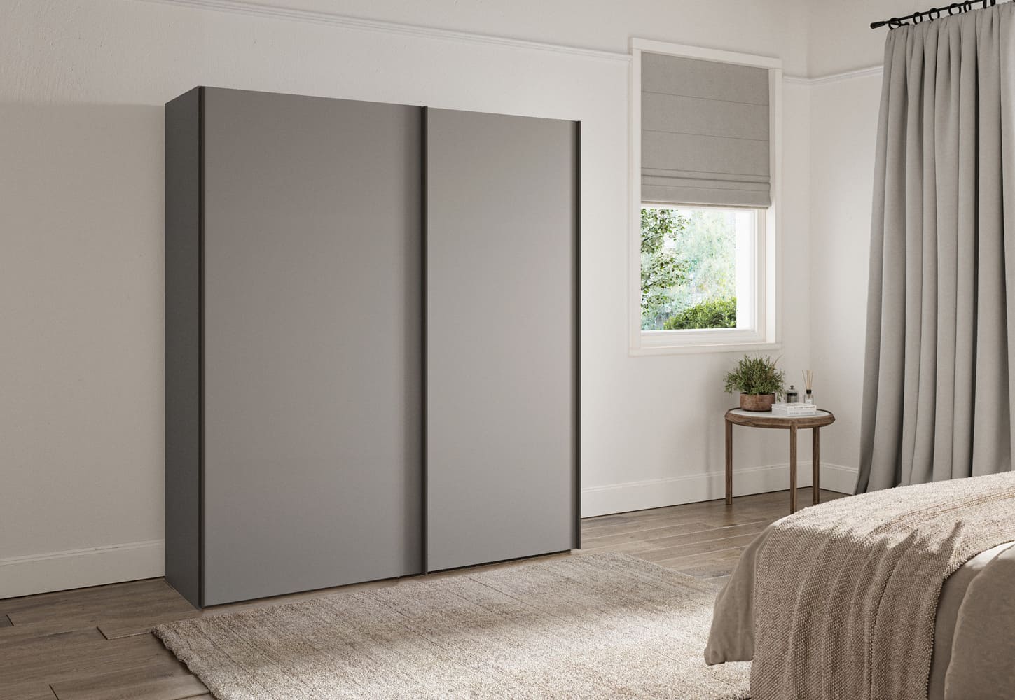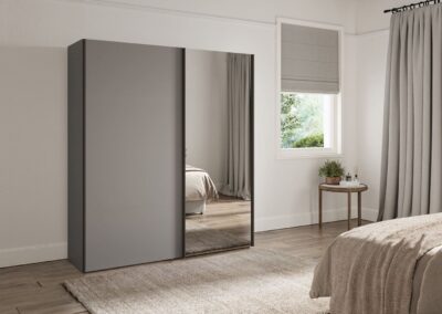 There are plenty of colours and styles to choose from with Miami Plus. A sliding door range, you’ve got sultry graphite or smooth pebble grey, soft champagne, classic white or characterful wood finishes Nordic oak, rustic oak, dark rustic oak and grainy looking holm oak. Add in mirrored glass fronts and a choice of chrome or slate trims and handles and there’s surely something to suit every taste.