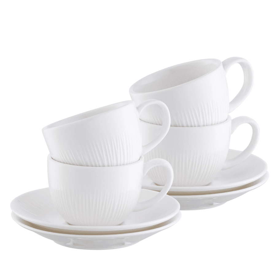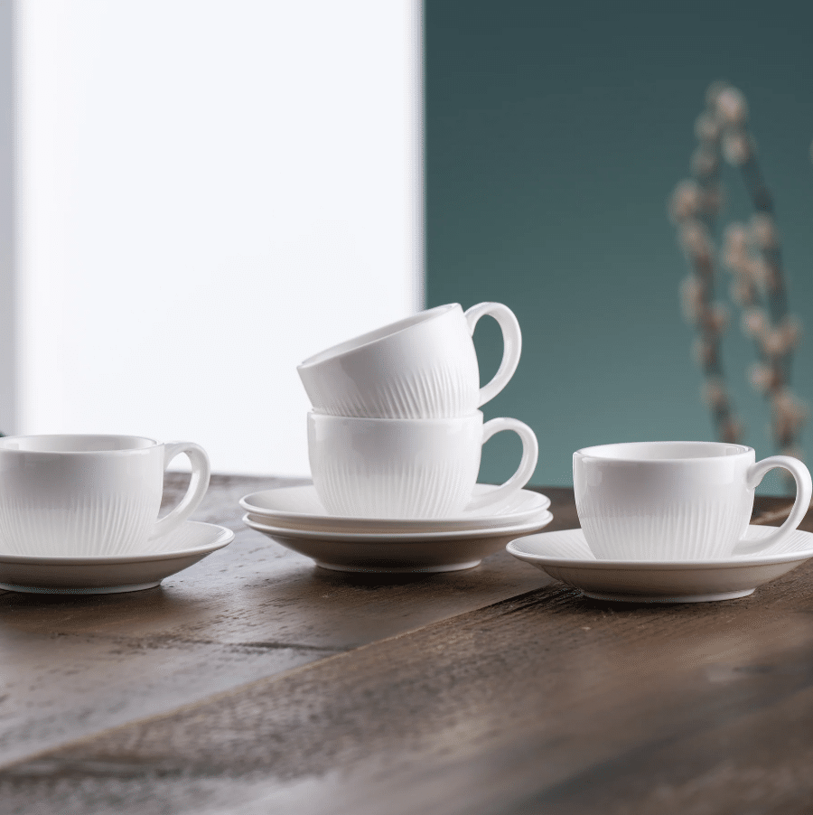 The Erne tableware collection is crafted from crisp white porcelain, featuring a subtle linear pattern inspired by the banks of the Lough Erne. A simple and striking collection, Erne is ideal for elegant celebrations yet practical and perfect for everyday use. This timeless design will appeal to both contemporary minimalist tastes or more traditional sensibilities, merging seamlessly into your home and style. Including several matching serving pieces and accessories, Erne will make a statement for entertaining friends and family. Build a beautifully timeless dining collection with everything you need and pair with Galway Crystal Erne stemware to create an impressive and effortless tablescape.