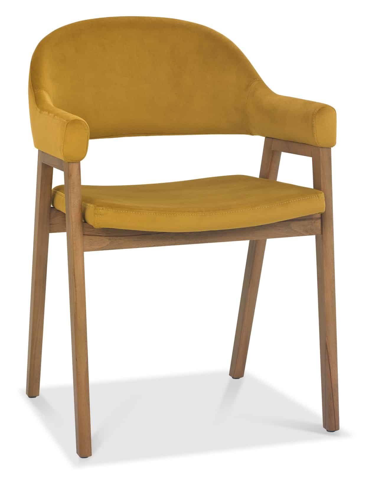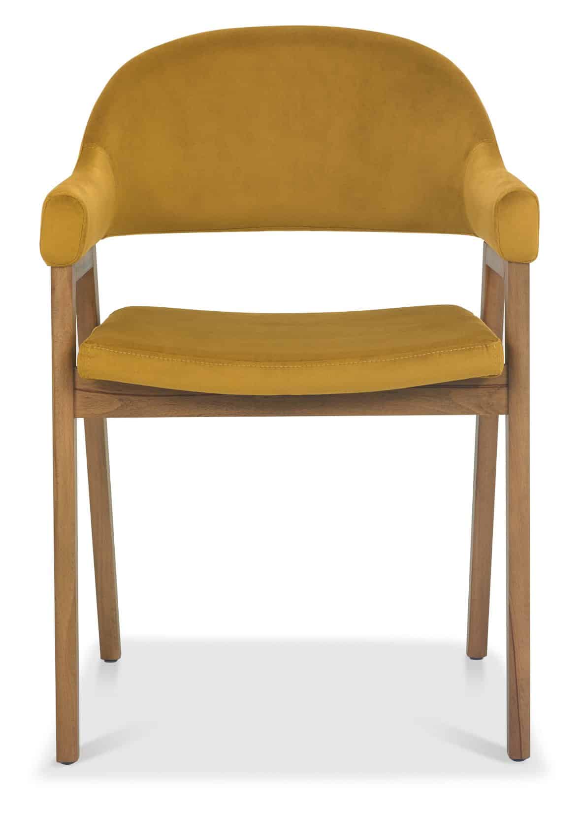 Camden Rustic Oak Upholstered Arm Chair in a Dark Mustard Velvet Fabric (Pair)
