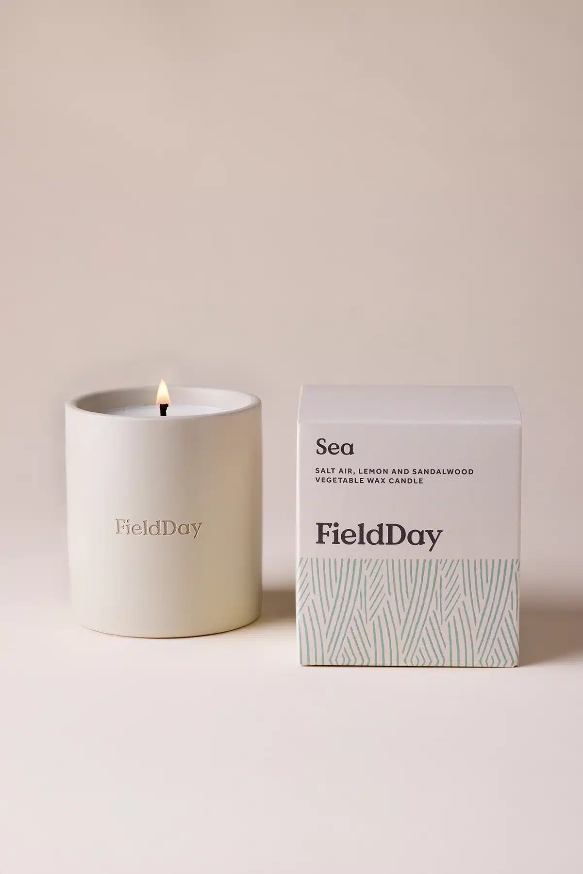 Introducing our Sea Candle with fragrance notes of Salt Air, Lemon & Sandalwood.