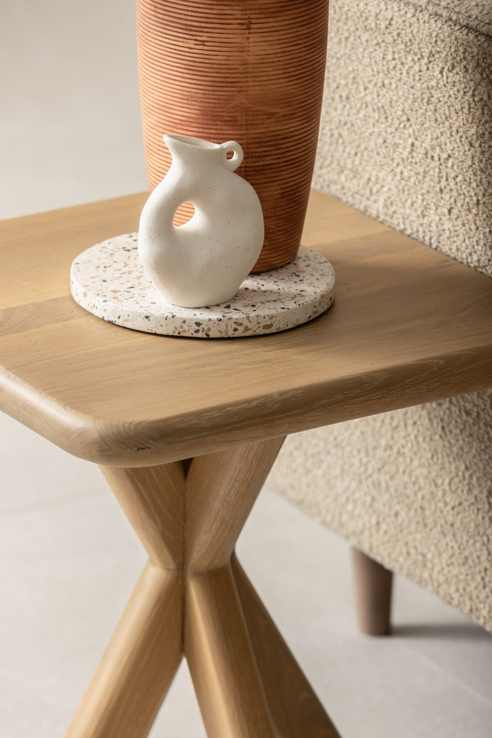 Baker Furniture Flynn Lamp Table in solid white oak. Whitewashed finish, H50xW45xD45cm, blends rustic charm with modern style for any room.