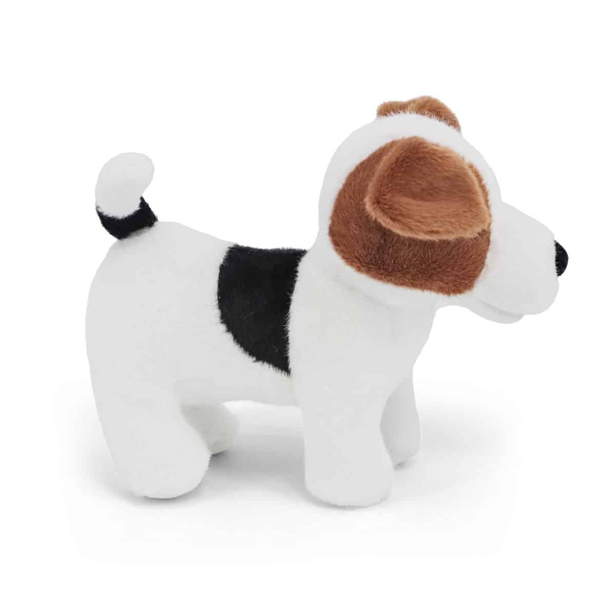 With its super-soft, white fur, distinctive brown and black patches, and an eager little face, this cute Jack Russell is always ready for fun. Its friendly expression and playful stance make it an irresistible companion for playtime, quiet stories, and cozy naps. This delightful pal is designed for children (and the young at heart!) who love a faithful furry friend.