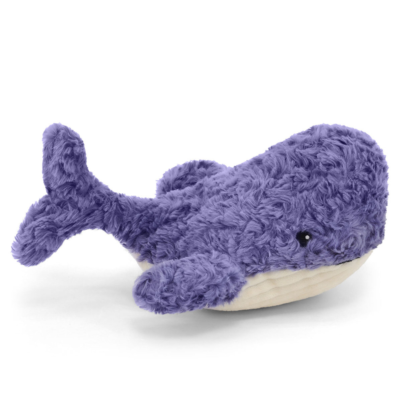 With its wonderfully soft, shaggy purple fur and a smooth cream-colored belly, this sweet whale is always ready for fun. Its friendly face and classic playful shape make it an irresistible companion for playtime, quiet stories, and cozy naps. This delightful pal is designed for children (and the young at heart!) who love a faithful marine friend.