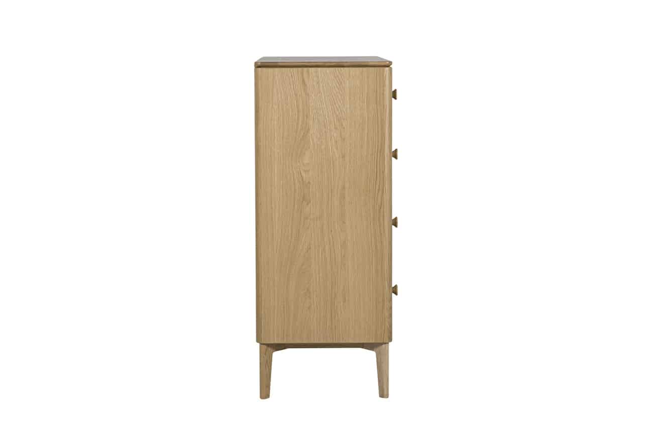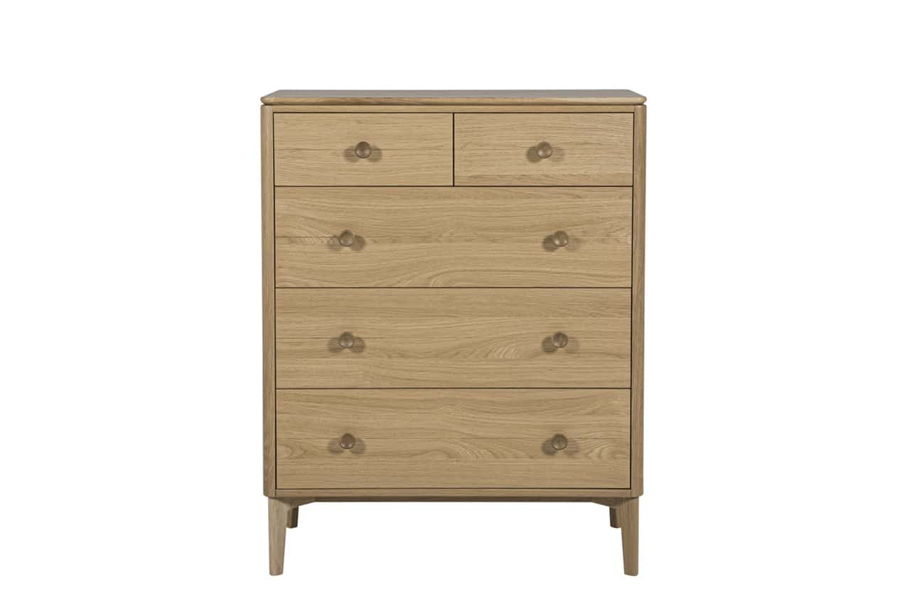 The Hadley Medium Chest by VIDA is a stylish and functional storage solution that will bring style and sophistication to any space. Crafted from oak and oak veneer, this five-drawer chest boasts an elegant Scandi design with curved edges for a modern touch. Five drawers offer plenty of deep storage so you can easily store and organize all of your essentials. The soft-closing feature ensures smooth operation, while the sleek finish adds an extra hint of elegance.