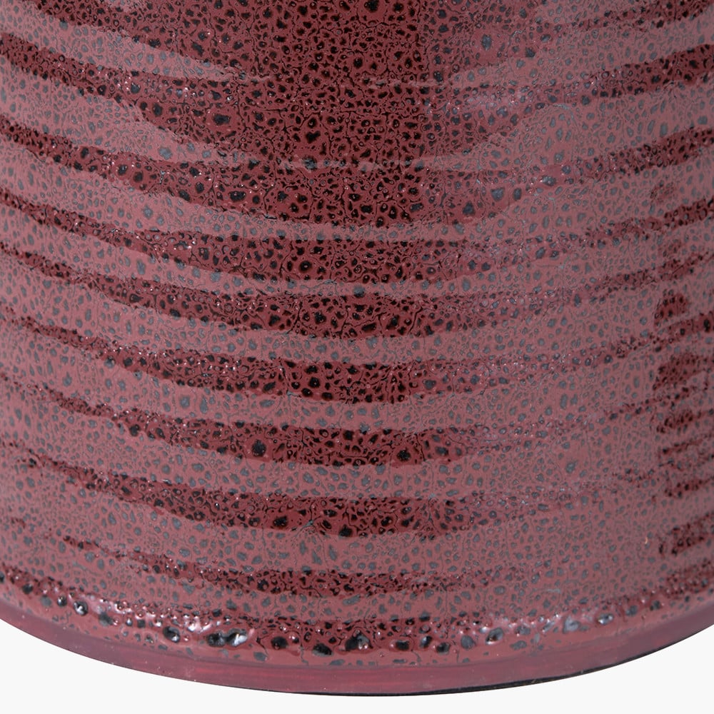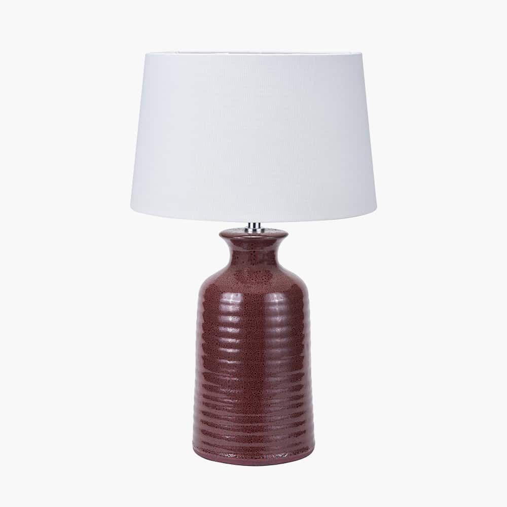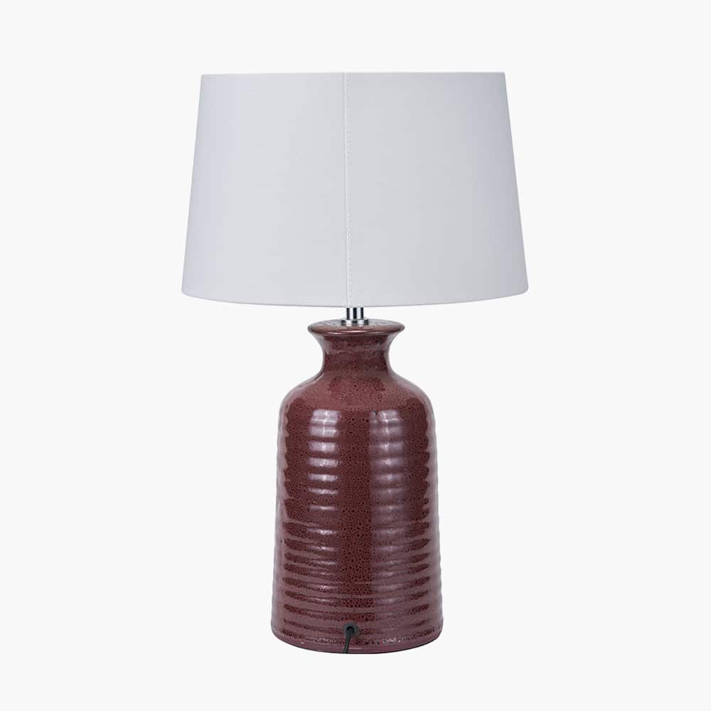 he stunning ceramic table lamp with a subtle ribbed textured effect is finished in a mulberry reactive glaze and topped off perfectly with a tapered, self-lined white shade. This versatile table lamp will look fabulous in any interior, adding subtle colour, tactility and style.