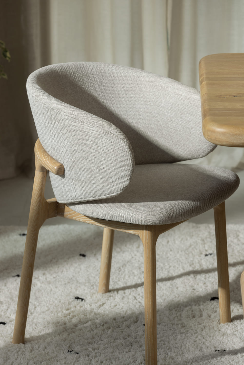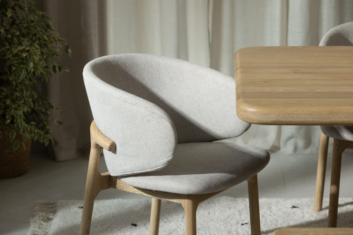 Noah Arm Chair by Baker Furniture – grey fabric, wooden legs, H81×W55×D54.5cm. Perfect with Flynn Dining Range; rustic charm meets contemporary style.