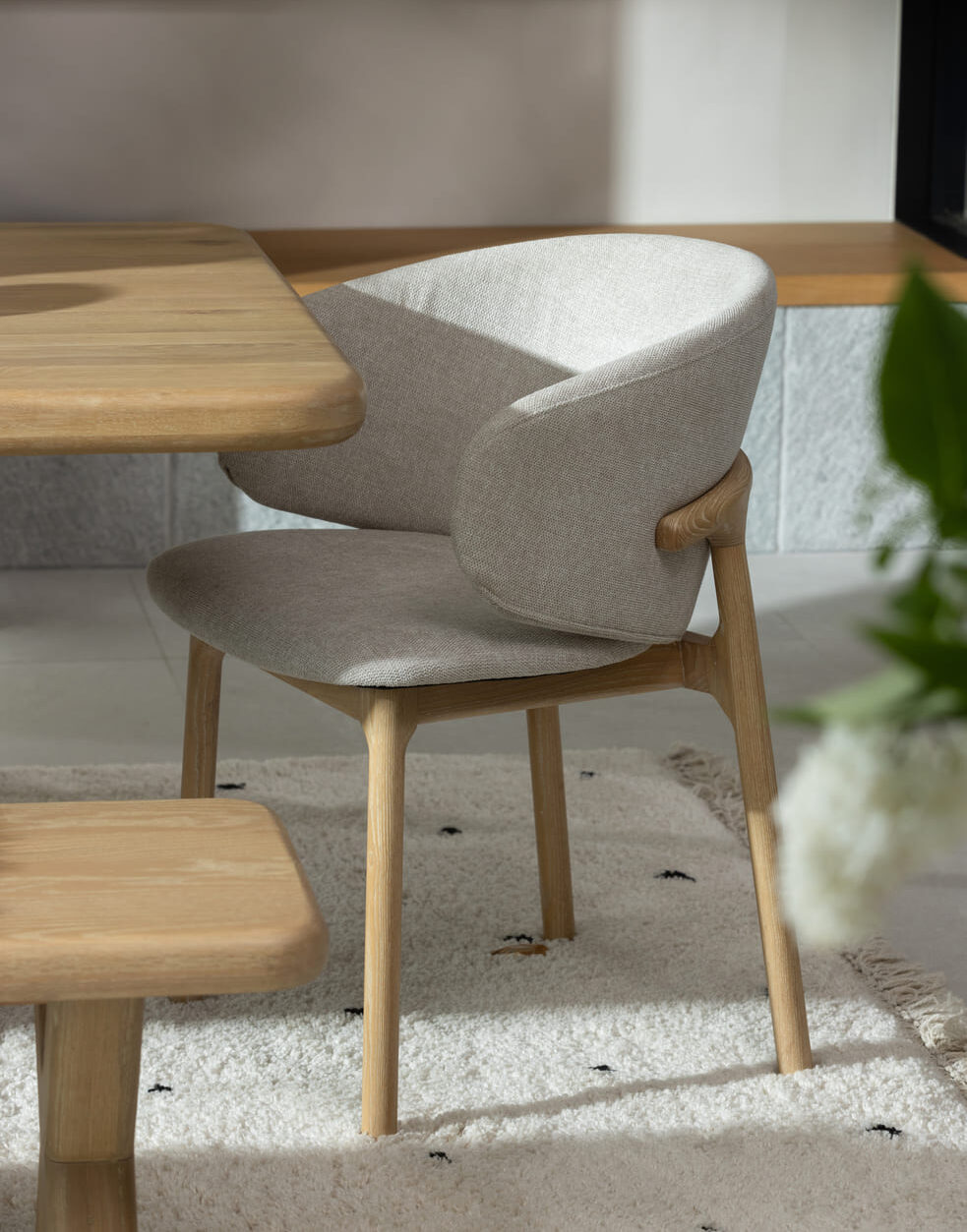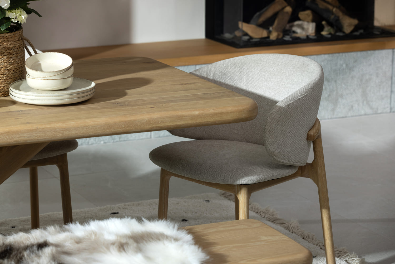 Discover the Noah Arm Chair by Baker Furniture in elegant grey fabric with wooden legs. Measuring H81cm x W55cm x D54.5cm, this chair complements the Flynn Dining Range perfectly. Crafted from solid oak with a soft whitewash finish, it blends rustic charm and contemporary design. Highlighting the natural grain and character of the wood, the Noah Arm Chair brings a light, airy aesthetic to any dining space. Ideal for timeless, versatile interiors.