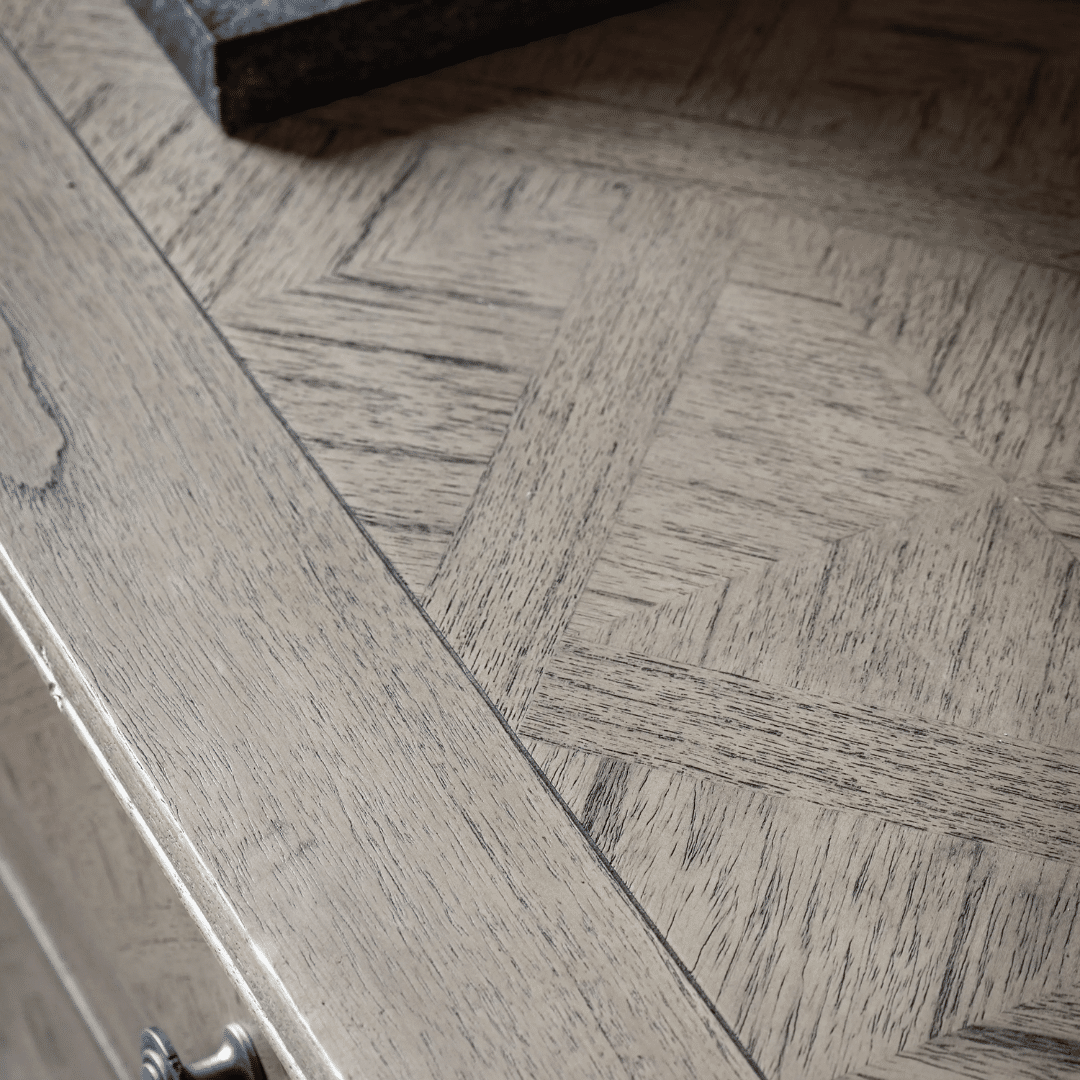 With a nod towards the French colonial style this practical sideboard is made from Mindy ash and features parquet inlaid veneer work in a lightly brushed natural finish. Each shelf contains an adjustable shelf.