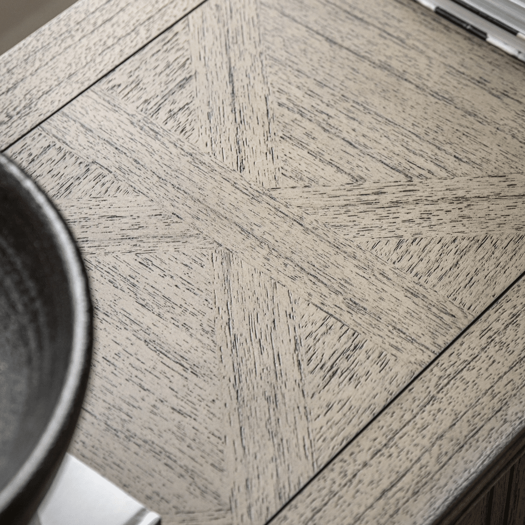 This collection offers a wide range of living, dining and bedroom furniture pieces, crafted from Mindy wood with a stunning inlaid parquet-style design. The lightly brushed finish recreates the natural ageing effect. With its classy design and subtle finish, it offers versatile style that would suit a wide range of interiors.
