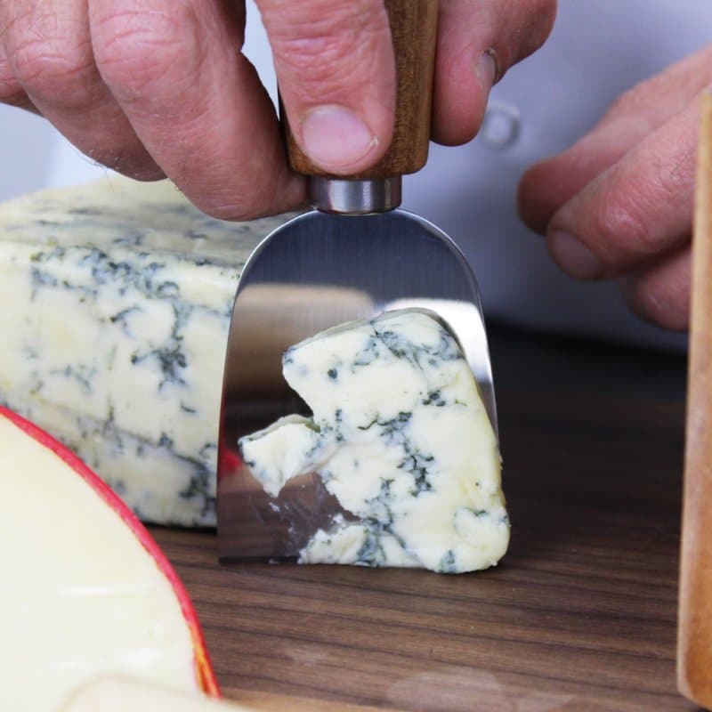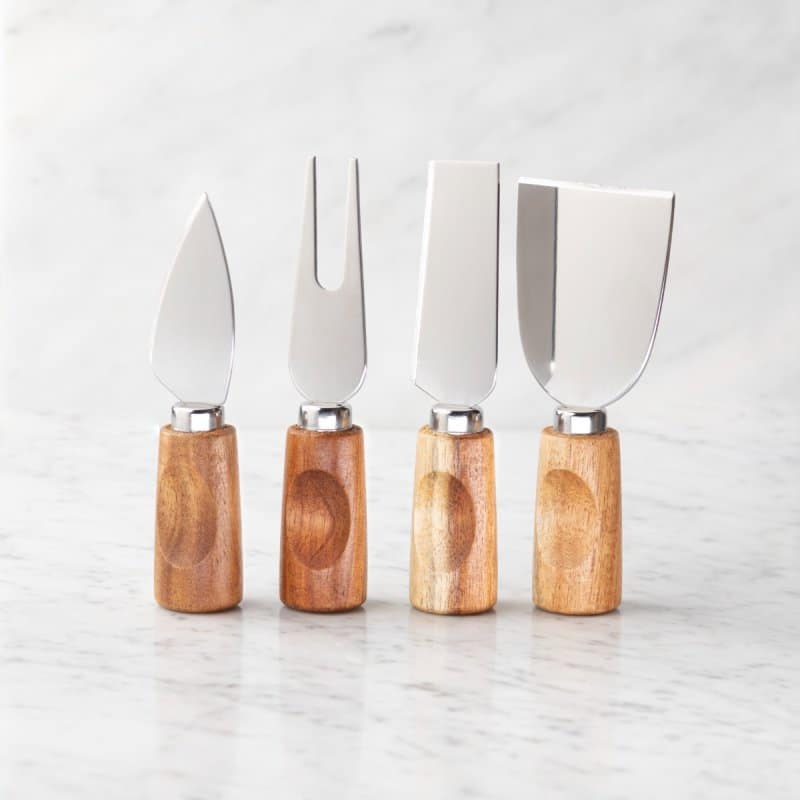 - Cheese fork, parmesan, hard cheese & bell knives with acacia wood handles