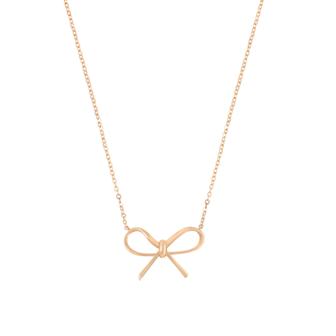 Crafted in radiant gold, the pendant’s sleek bow silhouette reflects the collection’s signature harmony of delicate design and meaningful expression. Its warm metallic finish adds a touch of refined polish, making it a versatile accessory for both everyday wear and special occasions.
