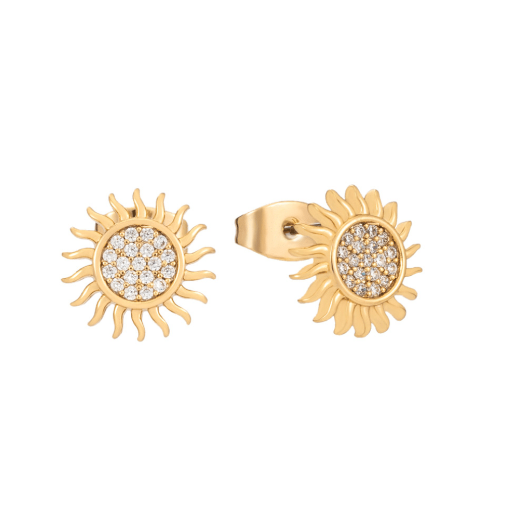 Tipperary Crystal – Soleil Sun With CZ Stud Earrings Gold