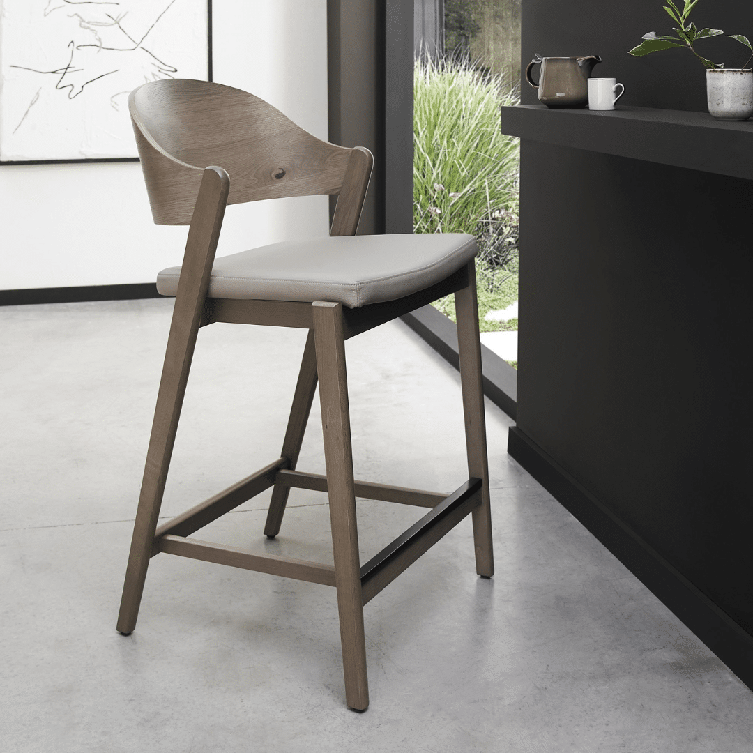 Vega Grey Oiled Oak Bar Stool – Grey Bonded Leather