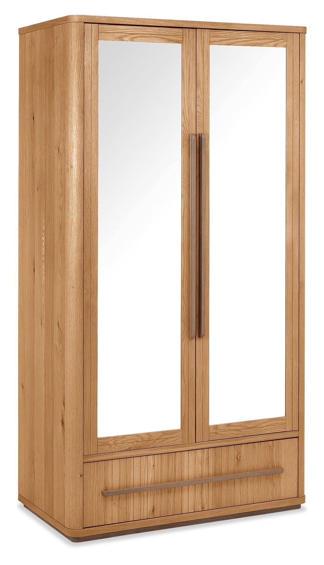 Stool options reflect the crafted aesthetic of the range. The upholstered version picks up on the turned-leg detail of the bed frame, while the cylindrical design offers concealed storage in a compact, versatile form. Completing the room, the Double Wardrobe features mirrored doors and a deep lower drawer, bringing together practicality and a cohesive visual finish. Defined by sculptural lines, layered materials and considered proportions, Vega offers a bedroom setting that is expressive, grounded and beautifully resolved.