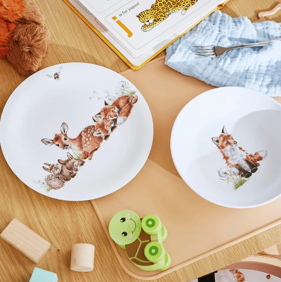 Give your child the gift of independence with this Little Wren Plate & Bowl Set from Wrendale Designs. Featuring sweet illustrations of baby forest animals designed by artist Hannah Dale, bring joy, imagination and practicality to the table with this versatile set. Made from lightweight melamine, it’s made to withstand the demands of childhood and can be wiped down or placed in the dishwasher for a quick and easy clean up. A thoughtful gift for a little one’s birthday and the perfect addition to your Wrendale collection.