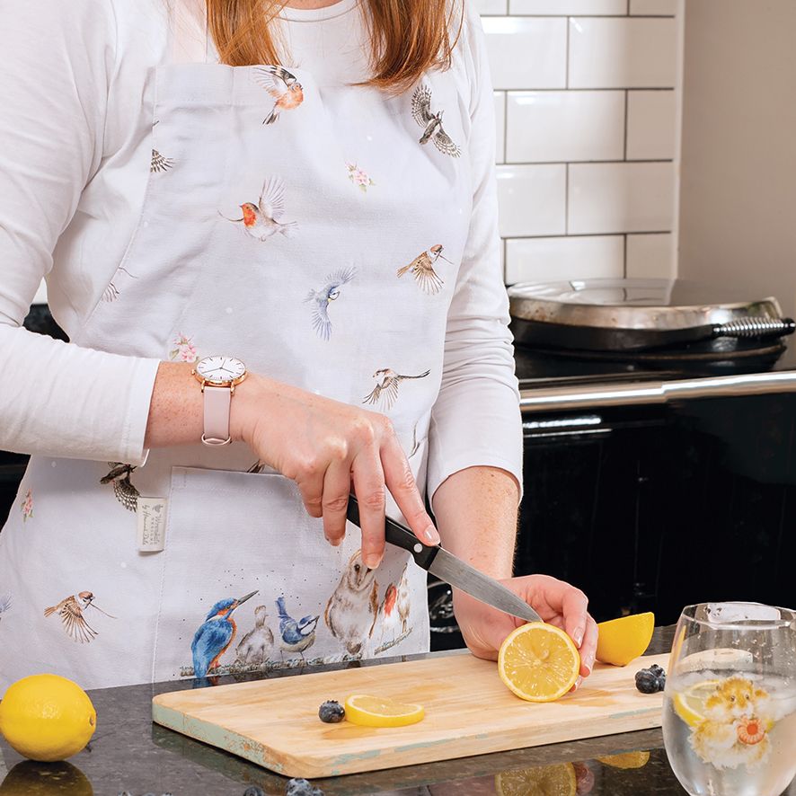 Perfect for those who love to bake or cook this gorgeous apron features Wrendale Designs patterned ‘Feathered Friends’ design with a larger bird illustration on the front pocket – perfect for storing your essentials whilst in the kitchen. The contrasting coloured neck loop and straps are fully adjustable with an easy adjust design.