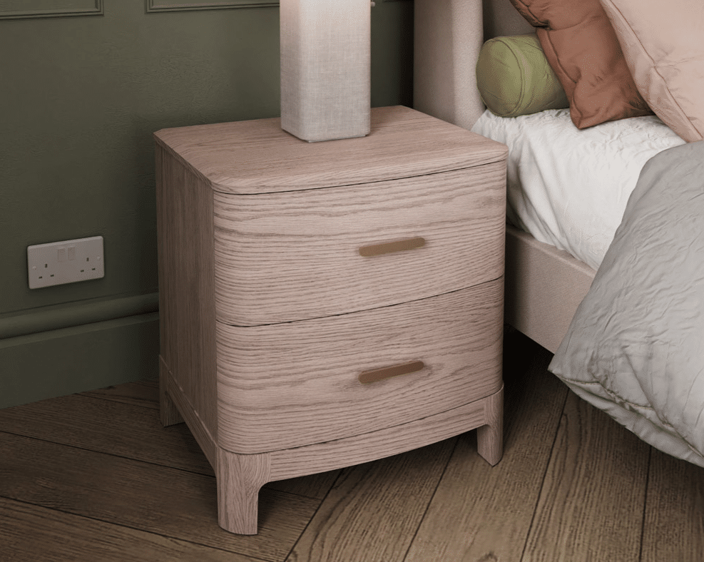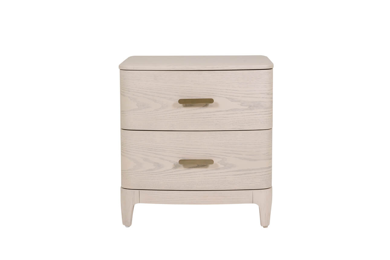 The Zahra Bedside Table by Vida is a sophisticated and stylish piece for any modern bedroom. Showcasing elegant brushed gold metal handle and metal runners for a seamless drawer closing.The beautiful rich natural colour and soft curved rounded edges are sure to catch eyes highlighting the texture of the Ash Veneer wood grain.