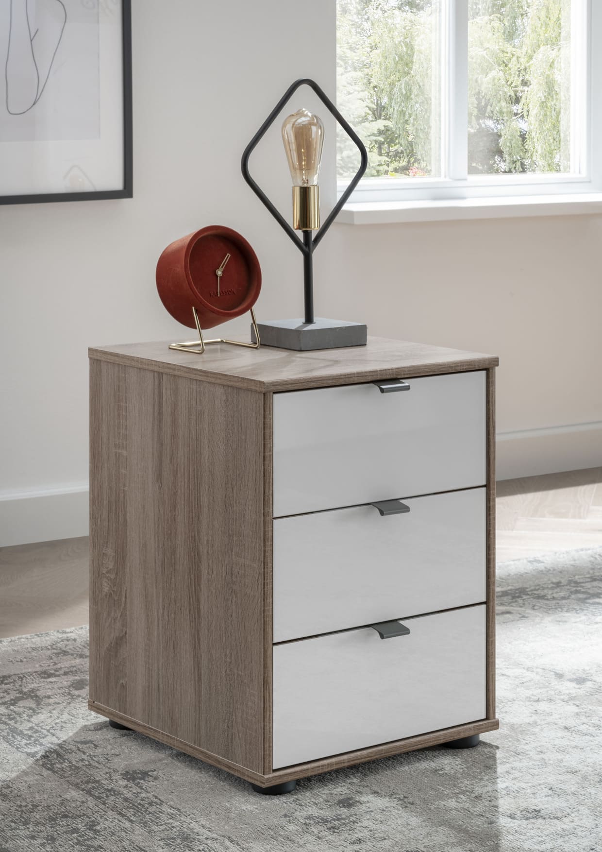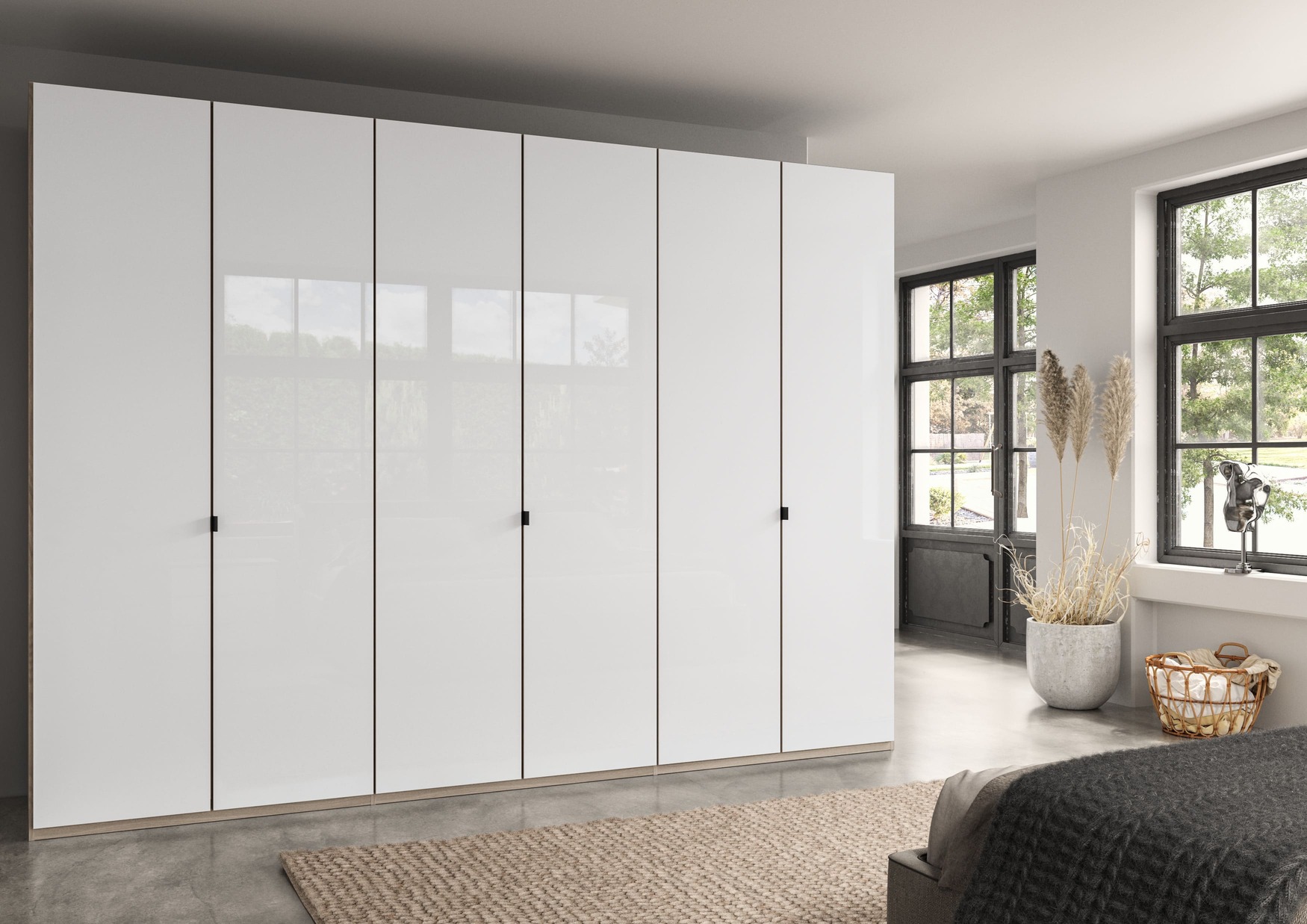 Sleek and assured, this hinged wardrobe option is a great choice to suit any bedroom. Carcase colour options range from white and champagne, pebble grey and graphite plus wood finishes Nordic oak and dark rustic oak. Door fronts come in white, champagne, pebble grey and graphite glass as well as mirrors. Complementary bedsides and chests are also available.